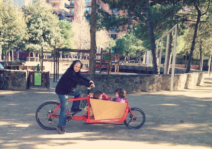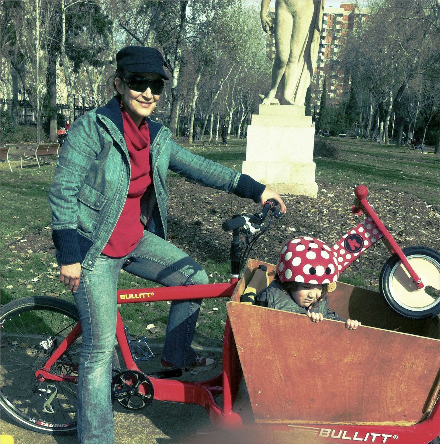 Ecocosmopolita, mamá, en la cargo bike Bullit