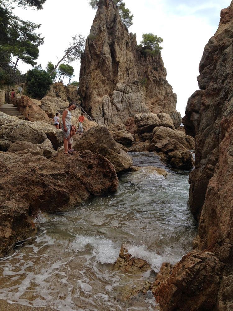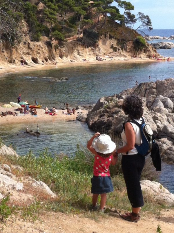(Nota de La Ecocosmopolita: desde el final de la Cala Fosca, puedes volver a entrar en el Camino de Ronda y, tras alguna subida muy empinada y alguna bajada simétrica a la anterior, llegar a las afueras de Palamós. Son unos 20 minutos de caminata alegre, pero relajada. Unos 20 minutos más, ya callejeando y te plantas en el centro de la ciudad. En mi caso, al volver me encontré al resto de la pandilla sentada, red ajena en mano, explorando la fauna mediterránea en una pequeña cala de piedra. Y eso, o algo parecido es ir a Palamós desde La Fosca).