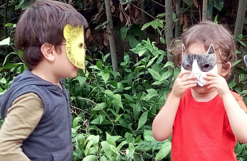 • Máscaras hechas en casa por R, con cartones que teníamos en casa. La elástica sí la compré.